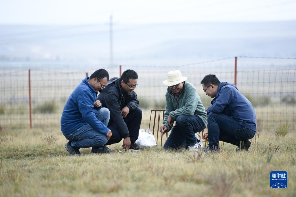 青海大学畜牧兽医科学院教授董全民(左三)带着学生在野外采集牧草标本(9月25日摄)。新华社记者 张龙 摄