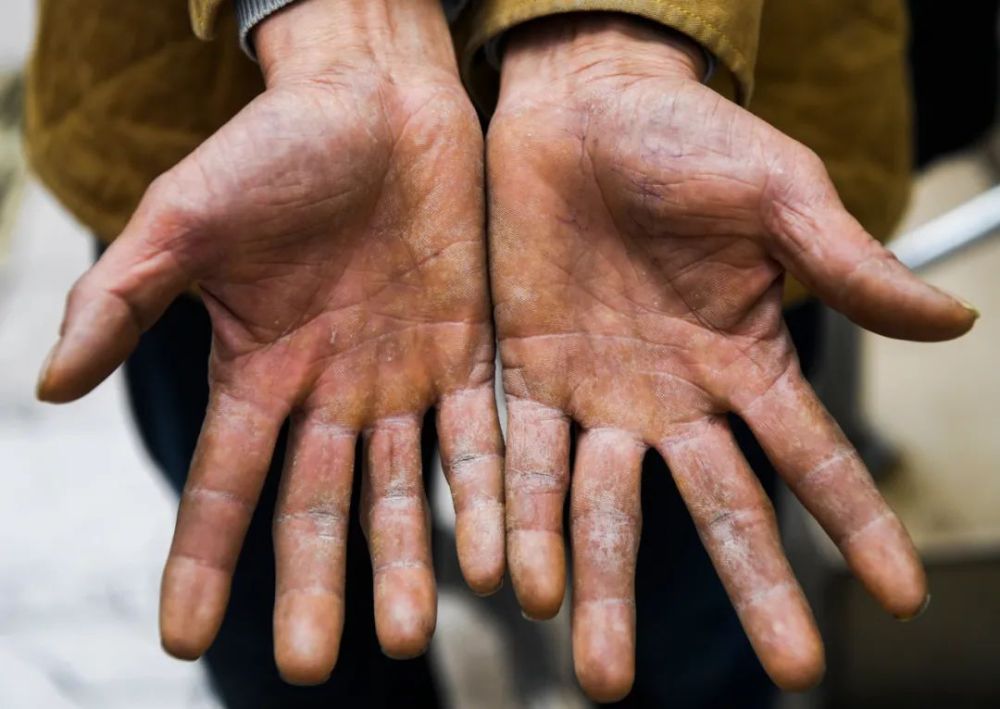 常年用手抓取货物,冉光辉的手掌不仅老茧多,手指关节也严重变形,如竹节般,每节指骨都向外隆起。但正是这鹰爪般的强韧,才能确保货物抓得牢。