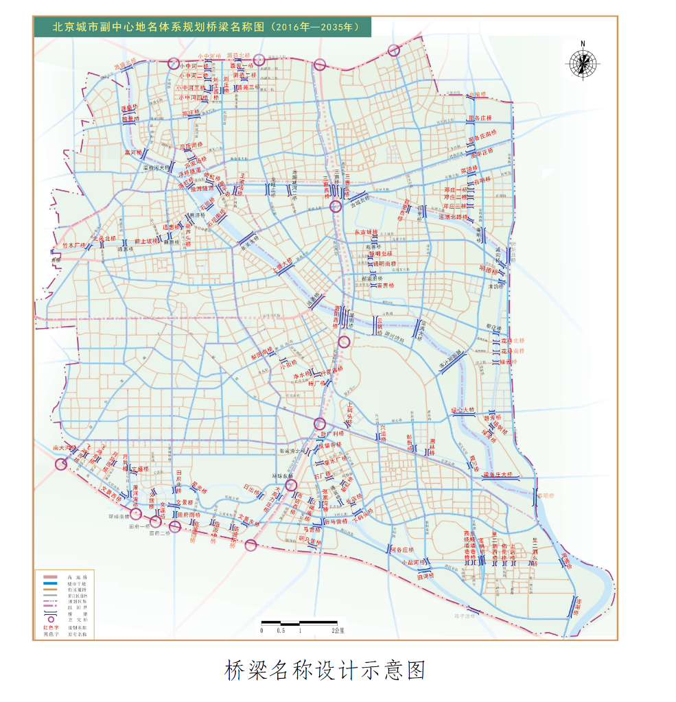 北京城市副中心地名体系规划桥梁名称图(2016年-2035年)。(受访者供图)