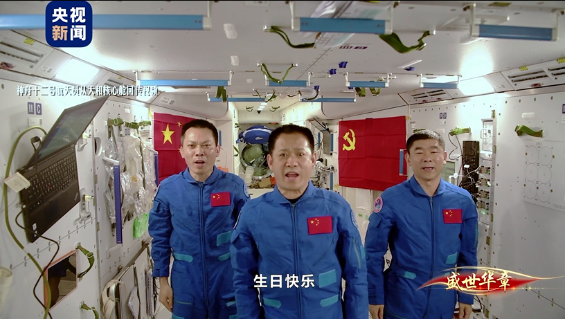 来自太空的祝福!神舟十二号航天员:百年风华,千秋伟业,伟大的中国共产党生日快乐!敬礼!
