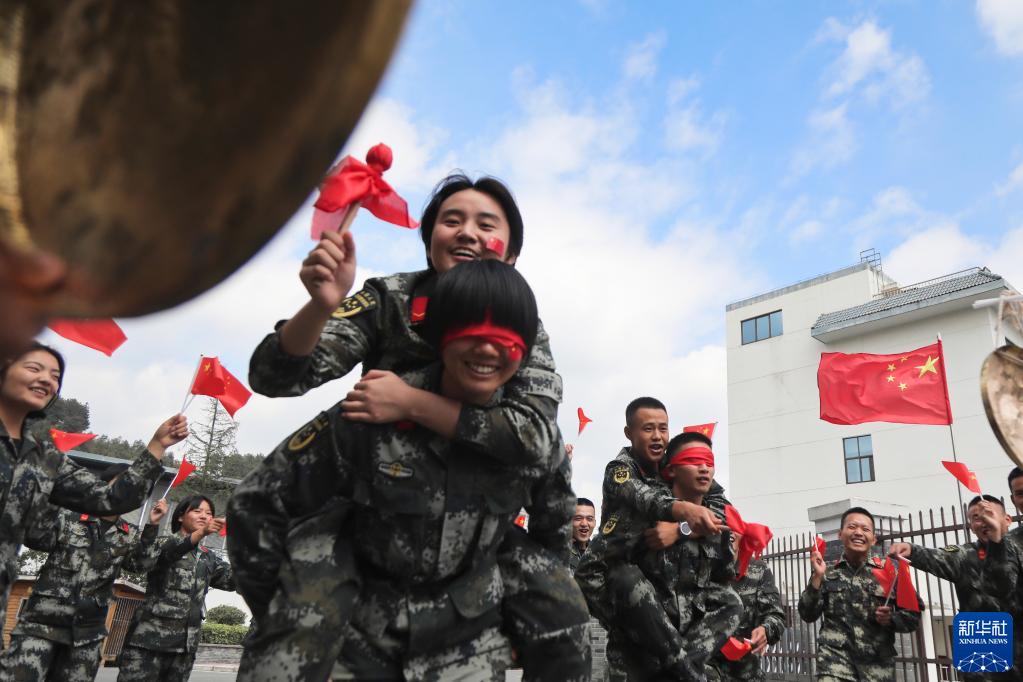 10月3日,武警贵州总队贵阳支队组织官兵开展文体活动。新华社发(蒋林岫 摄)