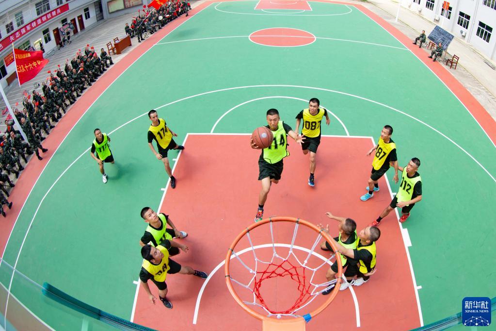 10月2日,武警广西总队新兵团组织新兵进行篮球比赛。新华社发(余海洋 摄)
