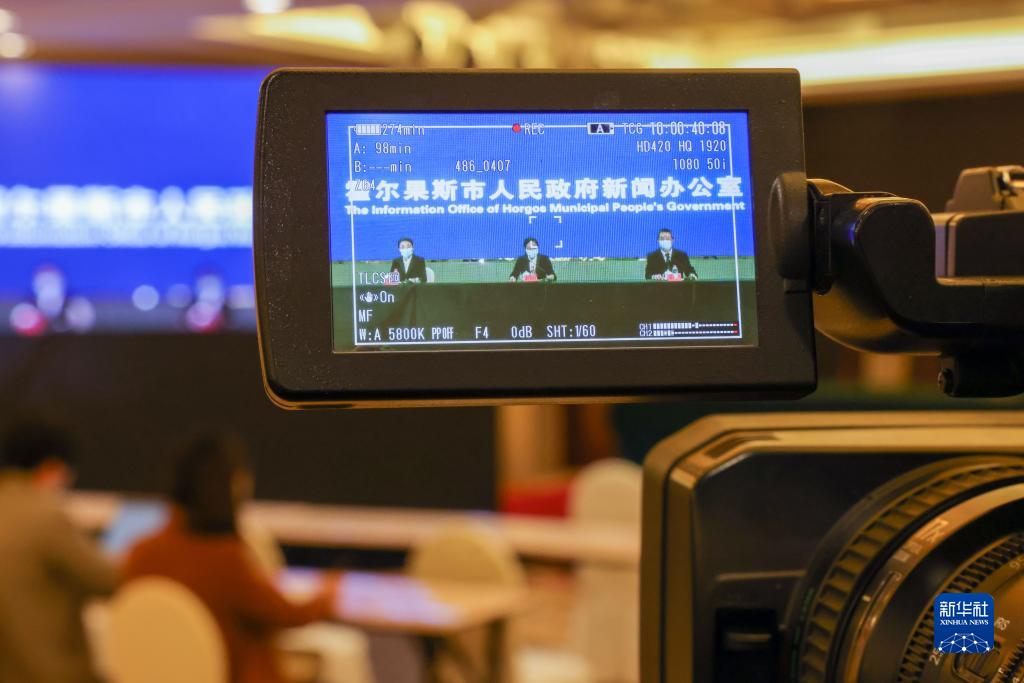 10月4日,新疆伊犁哈萨克自治州霍尔果斯市人民政府新闻办公室召开疫情防控新闻发布会。这是乌鲁木齐分会场。 新华社记者 丁磊 摄