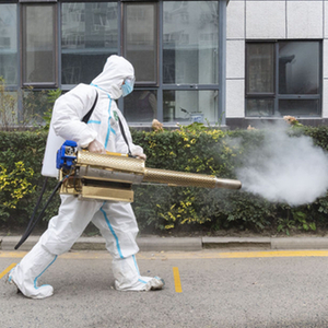 9月25日,哈尔滨市巴彦县志愿者协会的志愿者在巴彦县一小区内进行消杀。 新华社记者谢剑飞 摄