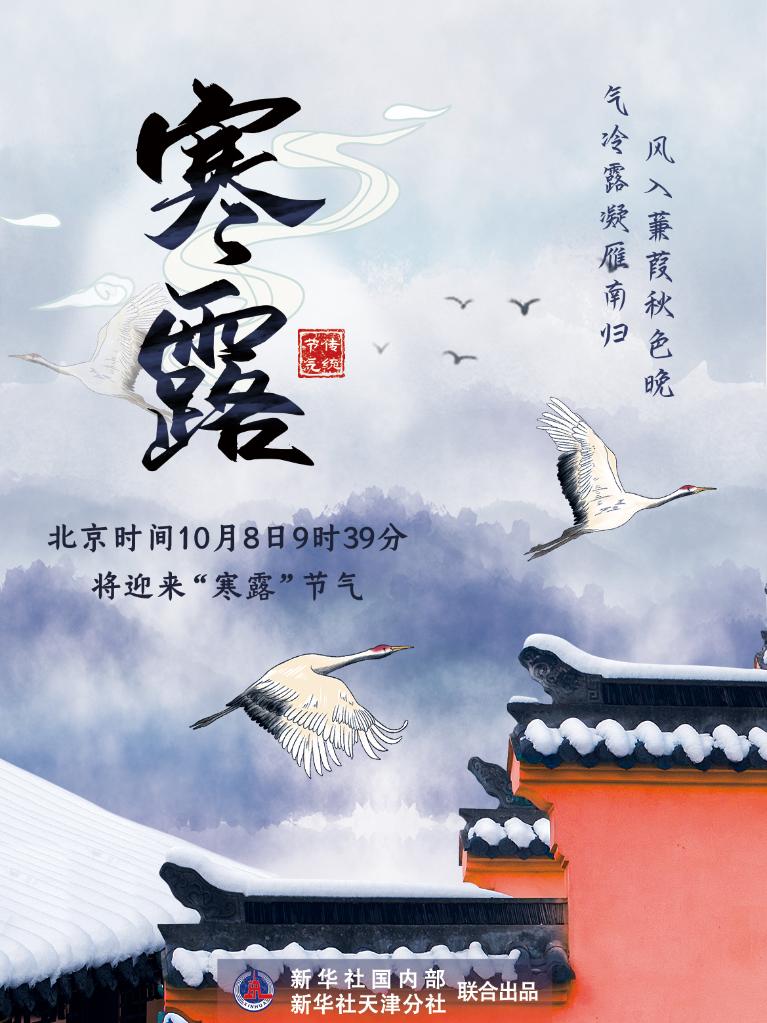 新华社天津10月6日电(记者周润健)“萧疏桐叶上,月白露初团。”《2021年中国天文年历》显示,北京时间10月8日9时39分将迎来“寒露”节气。此时节,荷败蝉噤,桐残叶黄,千里霜铺,鸿雁南归,呈现出一派深秋景象。