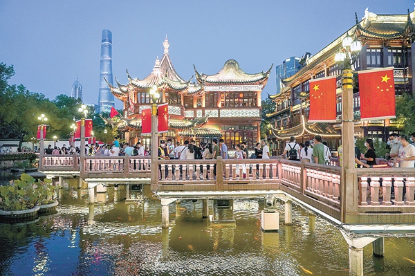 国庆期间,人们在上海豫园九曲桥上游玩。“十一”黄金周,各地消费市场活力涌动,迎来火热人气。新华社记者 王翔 摄