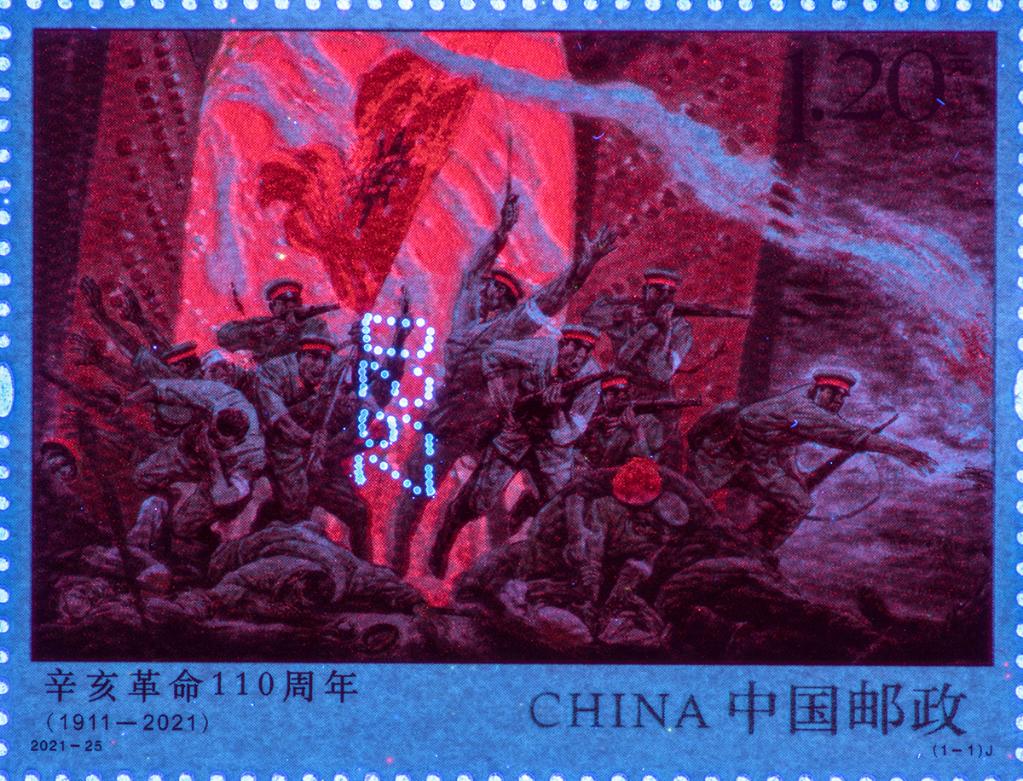 该套邮票由冯远设计,邮票展现了武昌起义时期革命志士高举大旗武装推翻封建统治的场景,色彩凝重、层次丰富、人物生动。邮票由北京邮票厂有限公司采用影写版工艺印制,通过紫外灯照射,邮票可呈现出红色火光的艺术效果。中国邮政通过“中国集邮邮票百科”微信小程序发布数字化内容,可使用AR功能观看。在全国指定邮政网点、集邮网厅、中国邮政手机客户端、中国邮政微邮局集邮微信商城和中国邮政商城微信小程序出售。