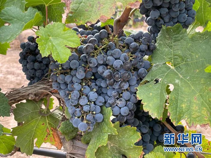 图为立兰酒庄葡萄基地中种植的品种赤霞珠。新华网 王莹摄