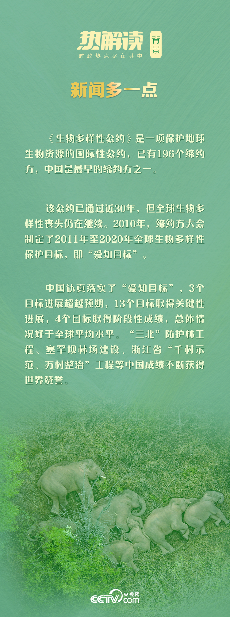习主席欣慰地说:“云南大象的北上及返回之旅,让我们看到了中国保护野生动物的成果。”