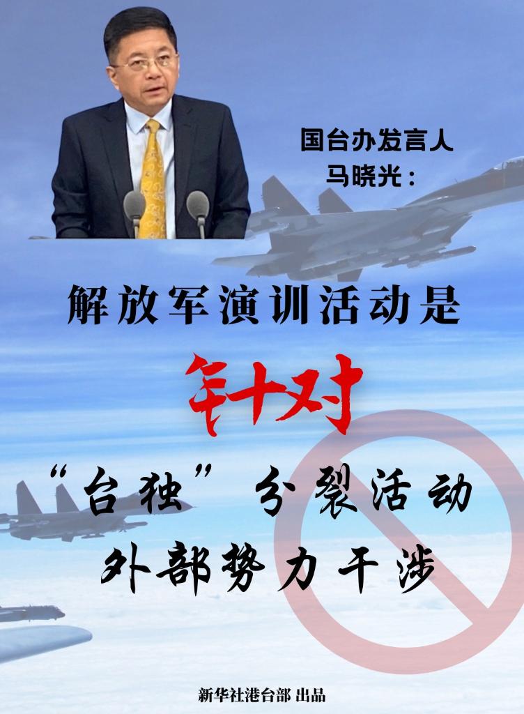 新华社北京10月13日电(记者石龙洪、刘欢、陈舒)国台办发言人马晓光13日在例行新闻发布会上应询表示,解放军演训活动是为捍卫国家主权和领土完整所采取的必要行动,针对的是“台独”分裂活动和外部势力干涉,目的是从根本上维护中华民族整体利益和两岸同胞切身利益。