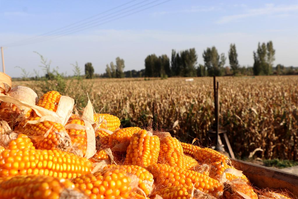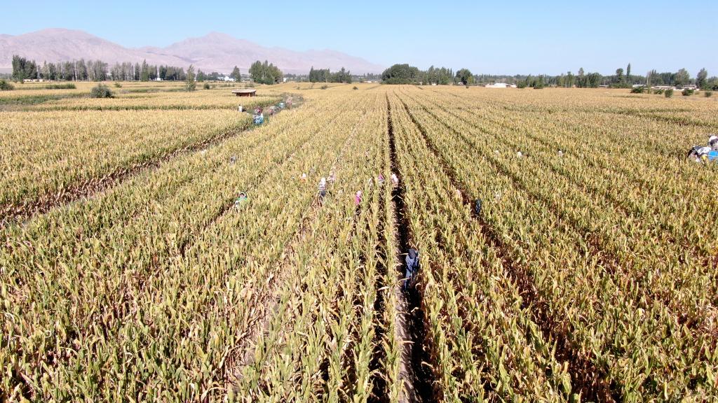 图为甘肃省临泽县制种玉米收获场景。(临泽县融媒体中心供图)