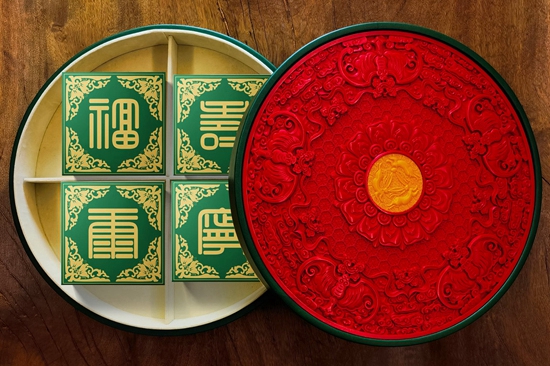2021年的中秋节,刘博闻做出了一件新的作品。作品是一个月饼盒,名为《三兔抱月圆盒》。圆盒采用雕漆工艺,其上通过机器雕刻有莲花、祥云、蝙蝠、玉兔等图案,画面整体布局稳重大方,颜色搭配巧妙而大胆。刘博闻介绍说,盒为圆形代表“团圆”,盒上的五只蝙蝠寓意“五福临门”,盒子以红色为主色寓意“喜庆欢乐”,盒中央黄色圆月搭配三兔抱月寓意“天伦之乐,玉兔报喜”,盒内四块月饼组成方形,圆里有方,寓意“孔方为钱,四方来财”。刘博闻说,大多数人欣赏一件雕漆作品,一看雕工,二看寓意,过硬的手艺搭配上精心设计的寓意就能够出好的作品,而在当下更为重要的,是将作品的实用性与艺术性相结合。“这个盒子可以用来装月饼,同时也具有储物功能。既有观赏性、艺术性,也有实用性。我认为传统工艺品既需要继承传统的技艺精髓,也要灵活使用先进的技术和生产力来适应当今的社会发展,让作品不仅仅可以用来看,也要能用。让老百姓不仅喜欢,也要买得起。”