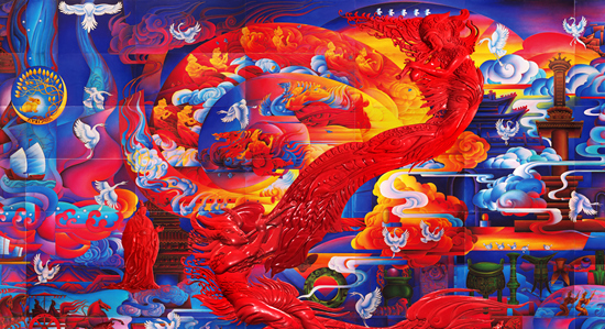 黄小群作品掐丝珐琅壁画《远古的声音》。