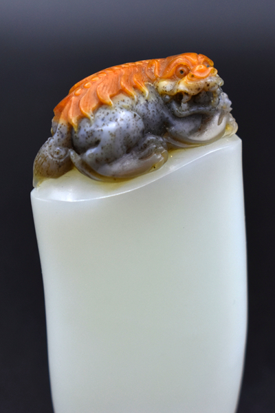 郭卫军玉雕作品《三色瑞兽手把件》。