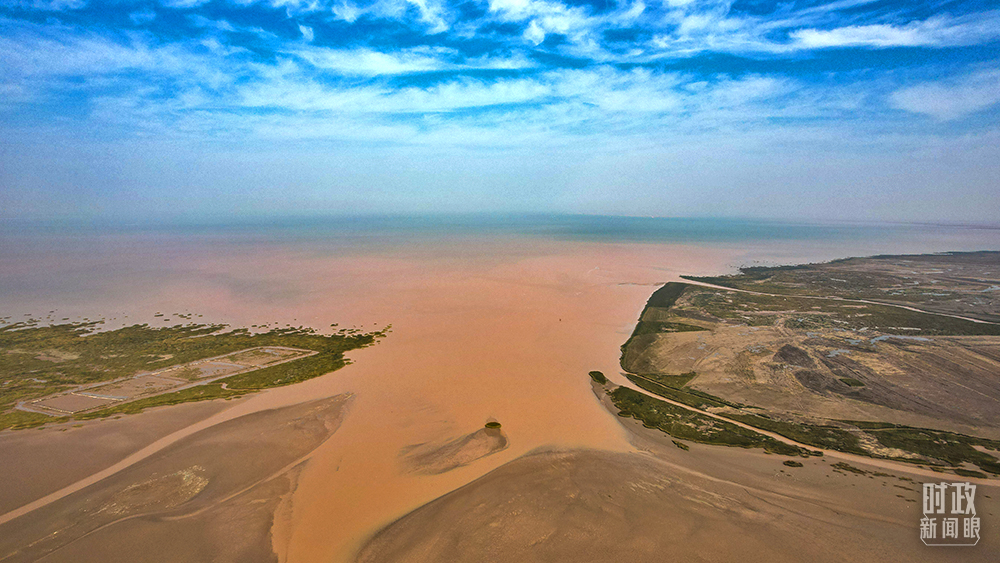 △黄河入海口地处渤海和莱州湾交汇处。(总台央广记者潘毅、国广记者李晋拍摄)