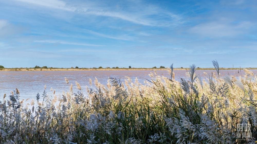 △当天的黄河三角洲上,芦花飘摇、候鸟成群。(总台央视记者彭汉明、国广记者李晋拍摄)