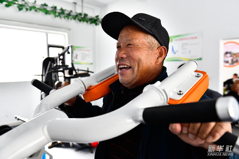 在东营市垦利区杨庙社区养老服务中心,65岁的盖景献在锻炼身体(10月18日摄)。