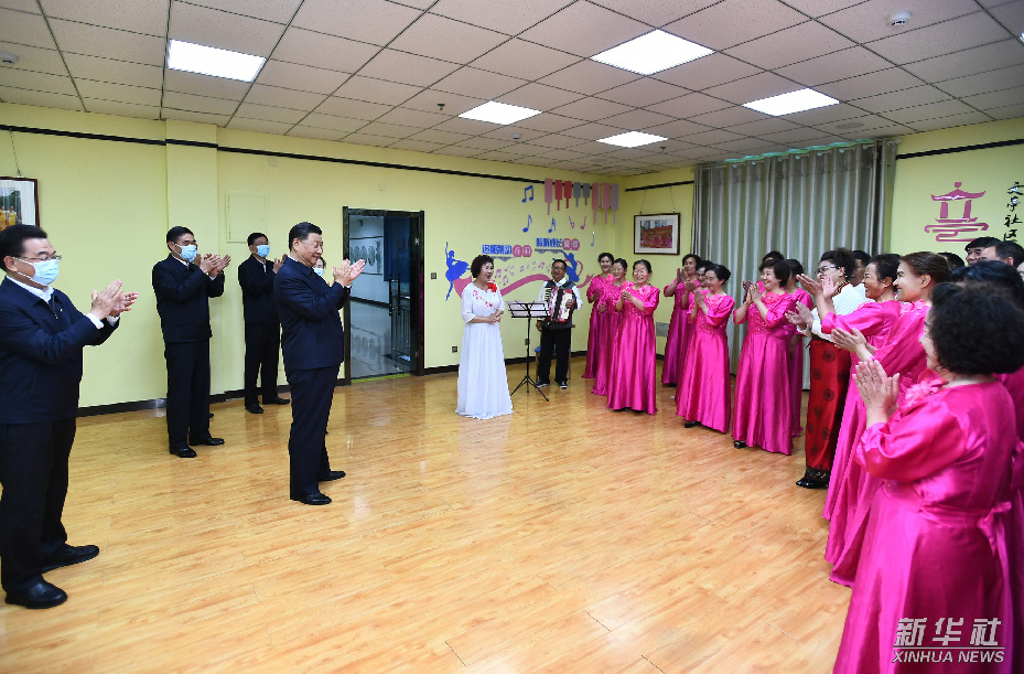 6月7日下午,习近平在青海省西宁市城西区文汇路街道文亭巷社区舞蹈室,观看退休人员歌曲排练。