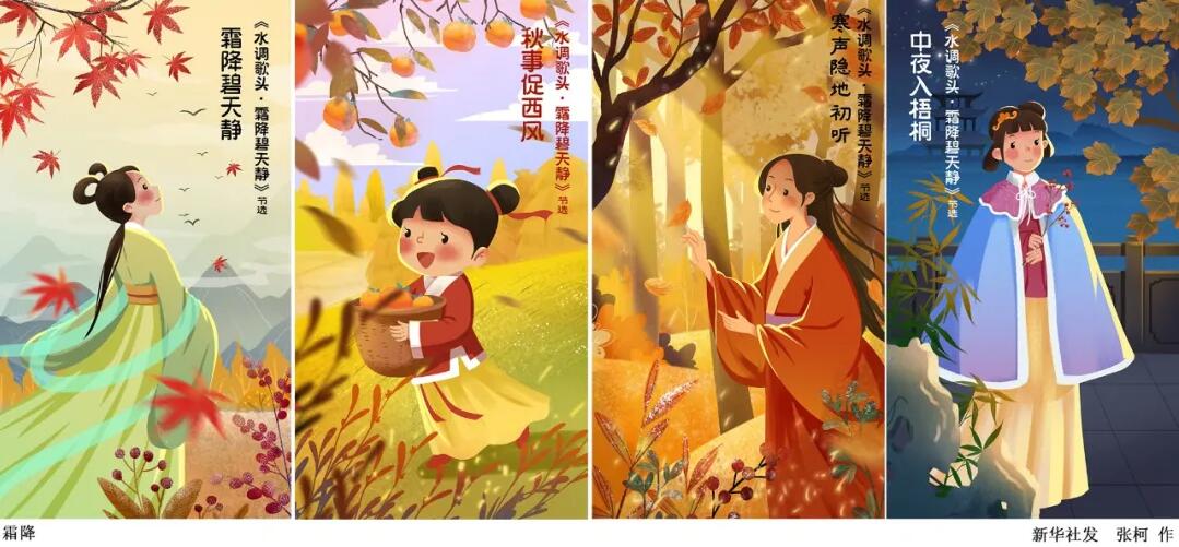 霜降节气,在每年阳历10月24日前后,农历九月中旬,太阳到达黄经210°时开始。《月令七十二候集解》说:“霜降,九月中。气肃而凝露结为霜矣。”