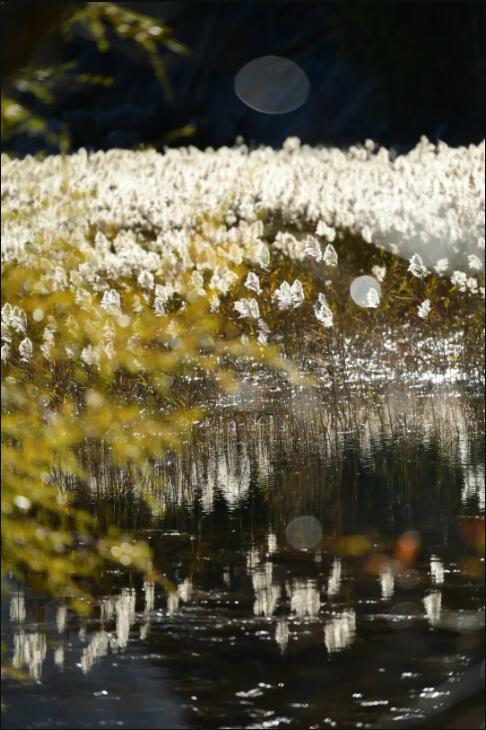 深秋,霜降。白霜打在芦苇的白絮上、狗尾巴草的草籽上、茅草的叶尖上。远远看过去,这些整齐的、修长的禾本科植物,在枯黄的底色之上,一夜之间突然披上了水的结晶体。这些结晶体,白白的,粉末状,肃杀却又润泽,覆盖一切却又吹弹欲破。