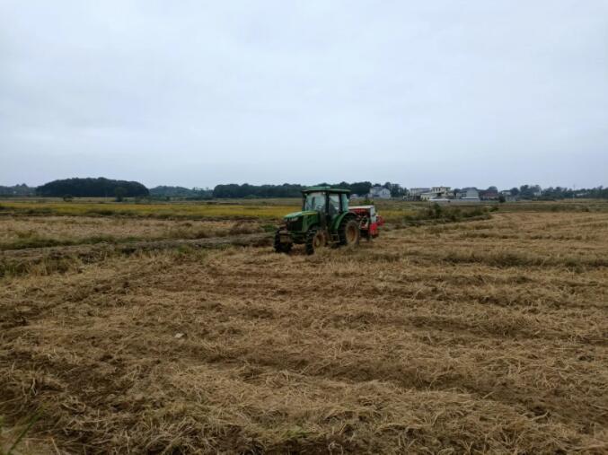这个时候稻基本都收割得差不多了,早批已经收割完成的田开始翻耕,为后期的油菜种植进行铺垫工作,翻耕的时候一边松土一边进行施肥。(作者:大诗兄)