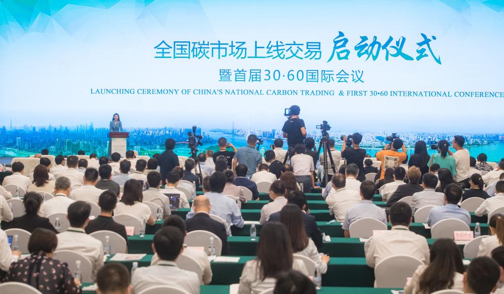 7月16日拍摄的全国碳市场上线交易启动仪式武汉现场。 新华社记者肖艺九 摄