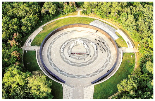 2020年10月12日航拍的沈阳抗美援朝烈士陵园下沉式纪念广场。新华社发