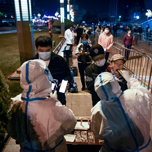 22日深夜,银川的户外温度逼近零摄氏度,兴庆区光明广场的临时采样点处,医务人员已经提前就位,许多市民也自发间隔一米、排起长队。“大家辛苦了!请保持一米间隔,不要摘掉口罩,打开手机准备好健康码……”现场志愿者一边维持秩序,一边帮助没有或不会使用智能手机的老人登记信息、关联二维码,以便快速完成检测。