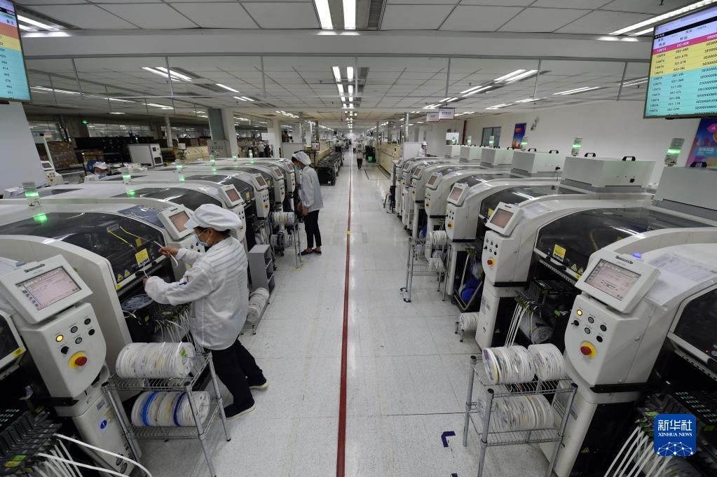 工人在位于安徽合肥的联宝(合肥)电子科技有限公司生产车间内忙碌(2020年3月5日摄)。新华社记者 周牧 摄