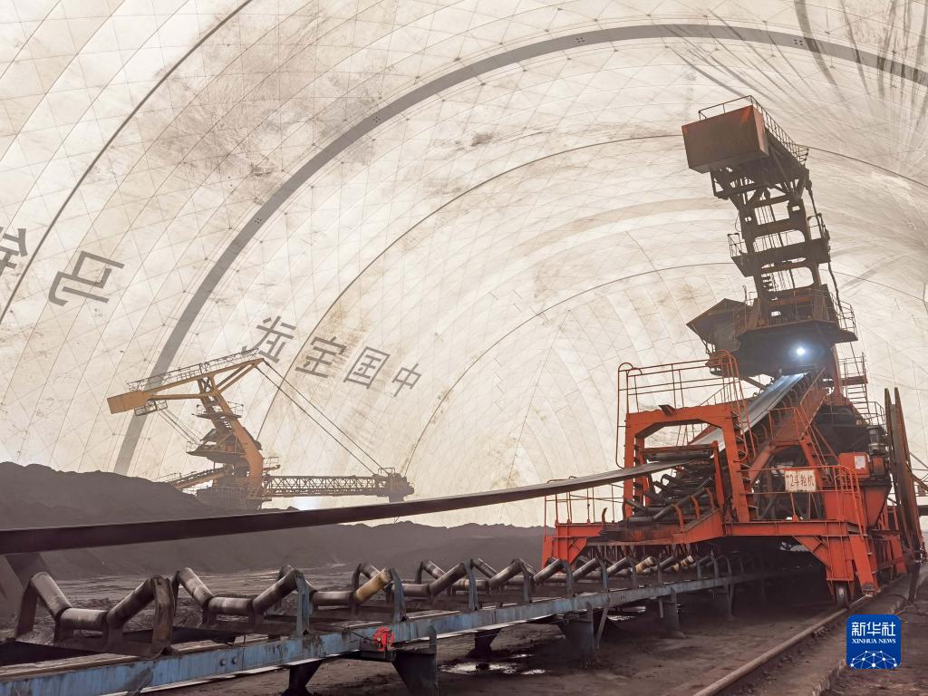在位于安徽省马鞍山市的中国宝武马钢集团热电南区充气膜全封闭煤场内,机械设备在作业(2020年12月29日摄)。新华社记者 曹力 摄