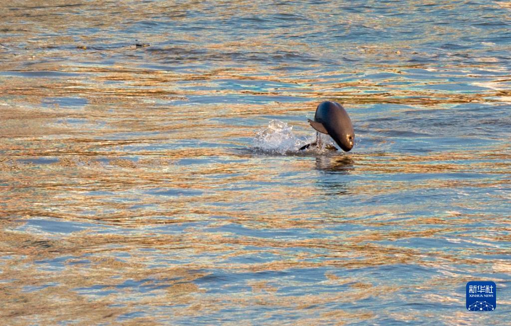 江豚在湖北省宜昌市西陵区镇江阁外逐浪嬉戏(2020年8月3日摄)。新华社发(雷勇 摄)