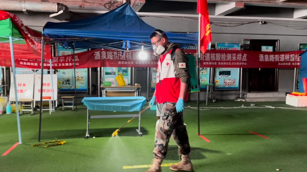 71岁的退伍军人苟永生负责维持队伍秩序,已连续工作12个小时;32岁的退伍兵段炜自带器材,承担了核酸采集点和部分街道的消杀工作;在兰州市就业和人才服务局工作的任宇佳下沉到杨家园社区连续工作,她在帐篷里吃了口冷馍,忍着胃痛又回到了岗位……