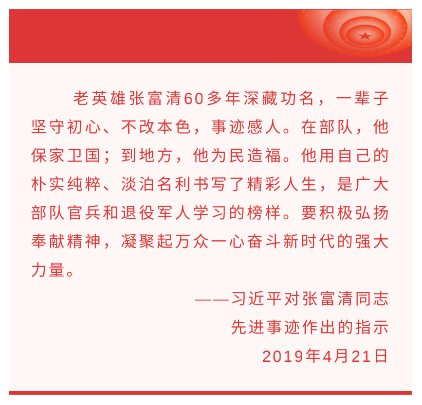 战斗英雄的事迹披露后,诸多光环加身,他依然是老样子,一切都没有变,还是那个坚守初心,保持本色的张富清。