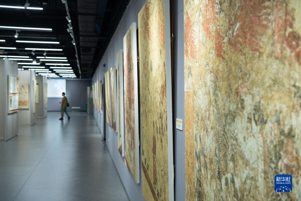 10月29日,观众在展厅内欣赏壁画。新华社记者 张金加 摄