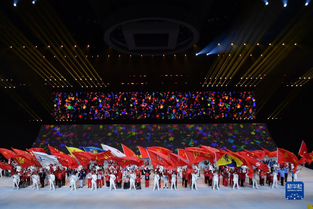 10月29日,中华人民共和国第十一届残疾人运动会暨第八届特殊奥林匹克运动会闭幕式在西安奥体中心体育馆举行。这是闭幕式现场。新华社记者 张博文 摄