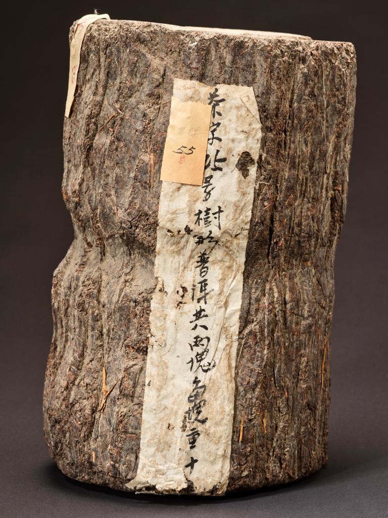“故宫树形花卷茶”发现之初,曾被认为是普洱茶,并被标注上“茶字25号树形普洱共两块每块重十斤”字样。后经研究人员仔细观察和查阅史料考证,发现此茶茶体的凹痕,是安化黑茶特有的“千两茶”在制作时用竹制篾箍捆扎茶体留下的。2010年,这件文物被正式鉴定为现存最早的安化“千两茶”实物。