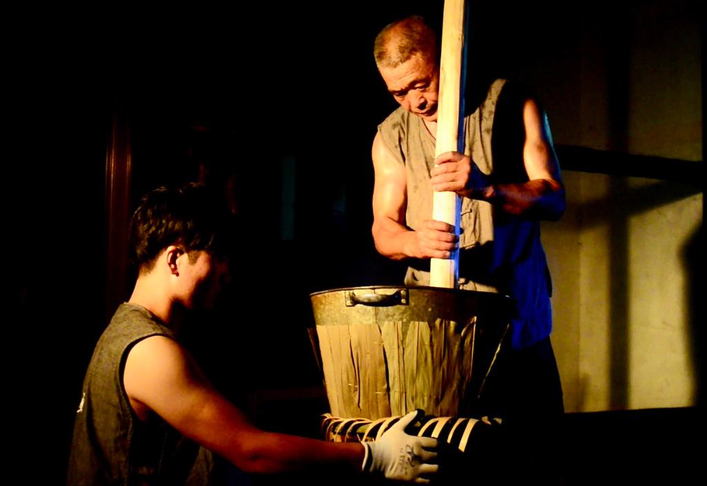 安化县政协副主席、县茶旅产业发展领导小组副组长肖伟群介绍,以“故宫树形花卷茶”为代表的“千两茶”,制作过程十分讲究。需将经汽蒸变软后的黑毛茶灌入垫有蓼叶和棕片的长圆筒形竹制篾篓中,用棍、锤等筑制工具,运用蒸、灌、绞、压、捶、滚、箍等工序,经多次反复锤压和束紧,使茶支达到致密坚实的要求,最后形成高160厘米左右、直径20厘米左右的呈树状的圆柱体。之后,还要“日晒夜露”四十九日,自然干燥而成。这套特有的制茶工艺,如今已成国家级非物质文化遗产。