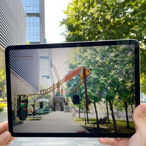 举个例子:站在广州市南沙区内已经建好的明珠开发大厦上俯瞰,眼前的明珠湾灵山岛尖还处在开发阶段。但通过虚拟现实设备或者平板电脑,人们可以清楚看到,已经规划但尚未建成的建筑以1:1比例叠加在现有实景上面——这是宸境科技为当地政府打造的一个“镜像世界”。