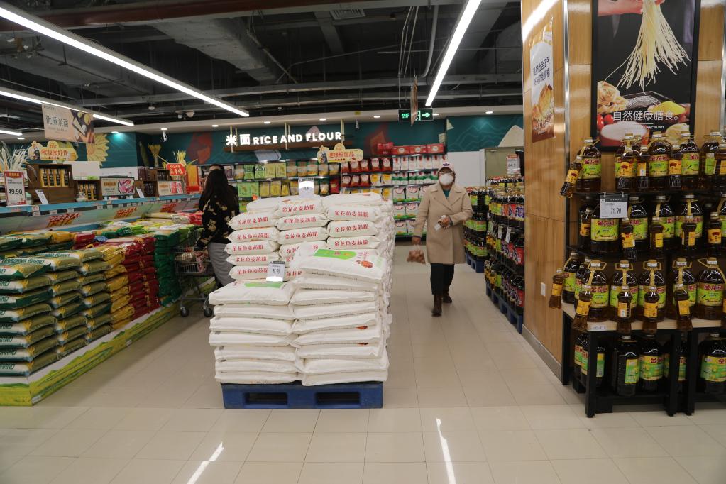 11月3日,在兰州市城关区北京华联生活超市(东方红广场店),米、面、油供应充足。新华社记者 马莎 摄