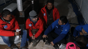 夜晚,海拔5300米的宿营地,大家睡帐篷打地铺,吃着方便面,热火朝天地总结一天的工作,做着第二天的规划。