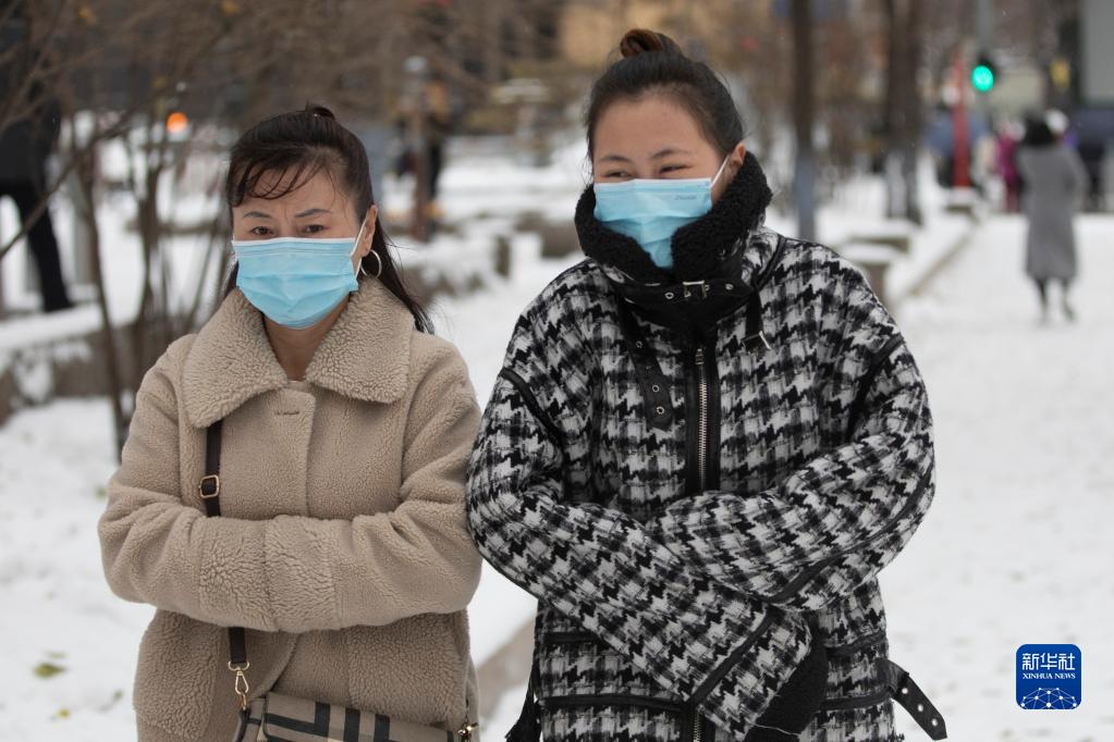 11月8日,市民在哈尔滨市香坊区中山路上冒雪前行。新华社记者 张涛 摄