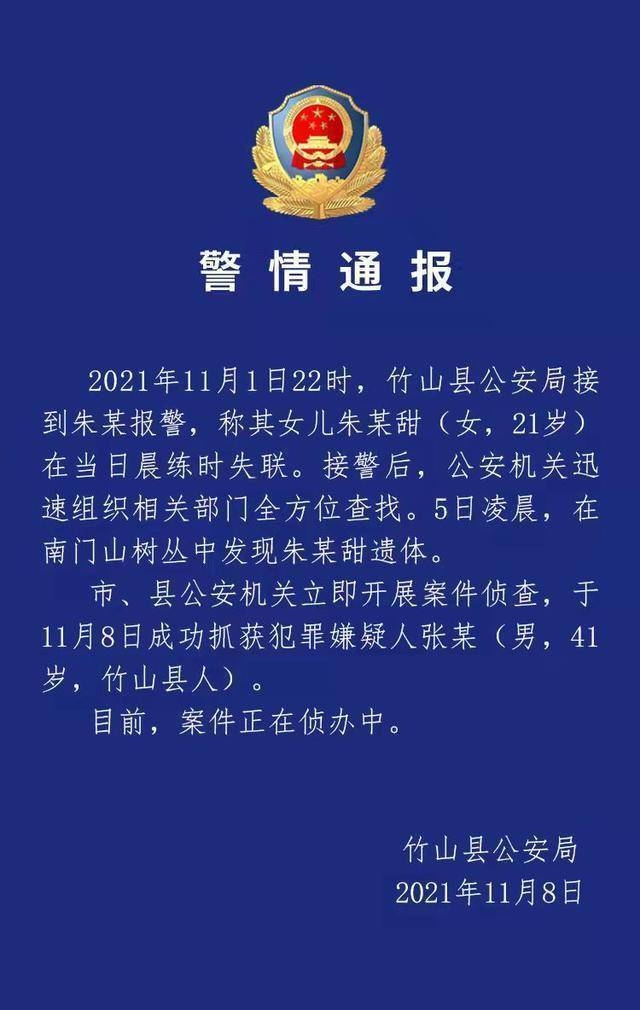 湖北竹山县21岁女孩晨跑遇害,嫌犯已被抓获