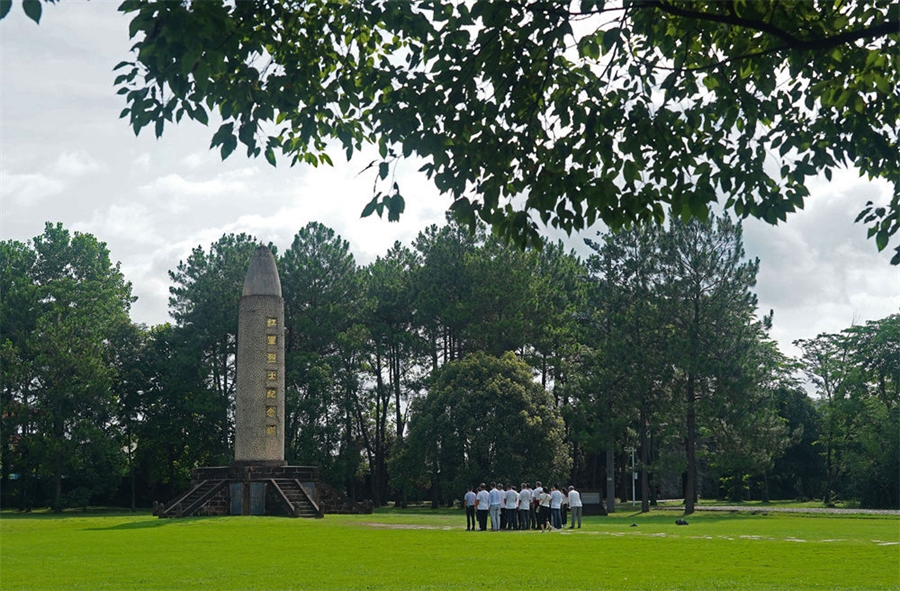 游客在江西省瑞金市叶坪革命旧址群红军烈士纪念塔前缅怀先烈(7月2日摄)。新华社记者 万象 摄