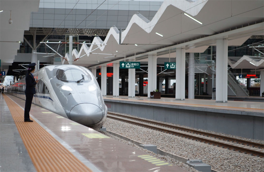 由赣州西站开往南昌西站的G5034次列车准备驶出赣州西站(2019年12月26日摄)。新华社记者 张浩波 摄