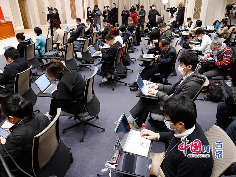 中共中央于2021年11月12日上午10时举行新闻发布会,介绍党的十九届六中全会精神。图为发布会现场媒体记者陆续到达。中国网 杨佳