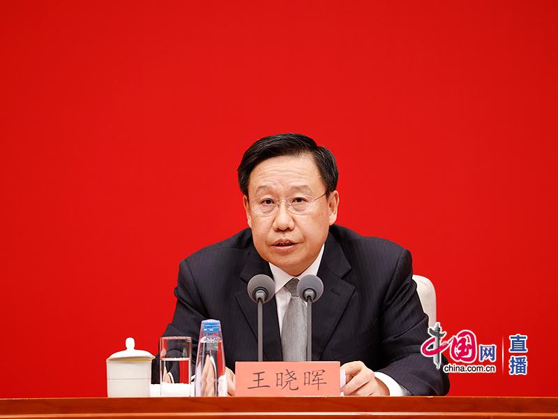 中共中央于2021年11月12日上午10时举行新闻发布会,介绍党的十九届六中全会精神。中央宣传部分管日常工作的副部长王晓晖介绍情况。中国网 杨佳
