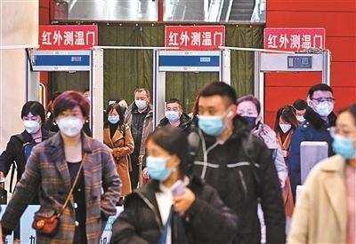 北京南站在出站口对旅客进行测温