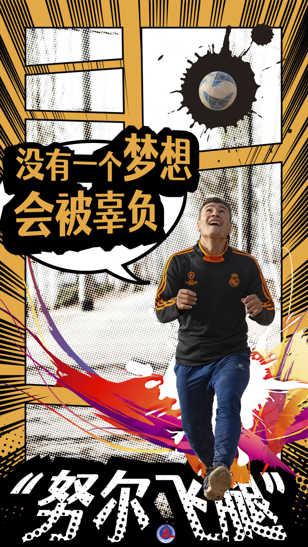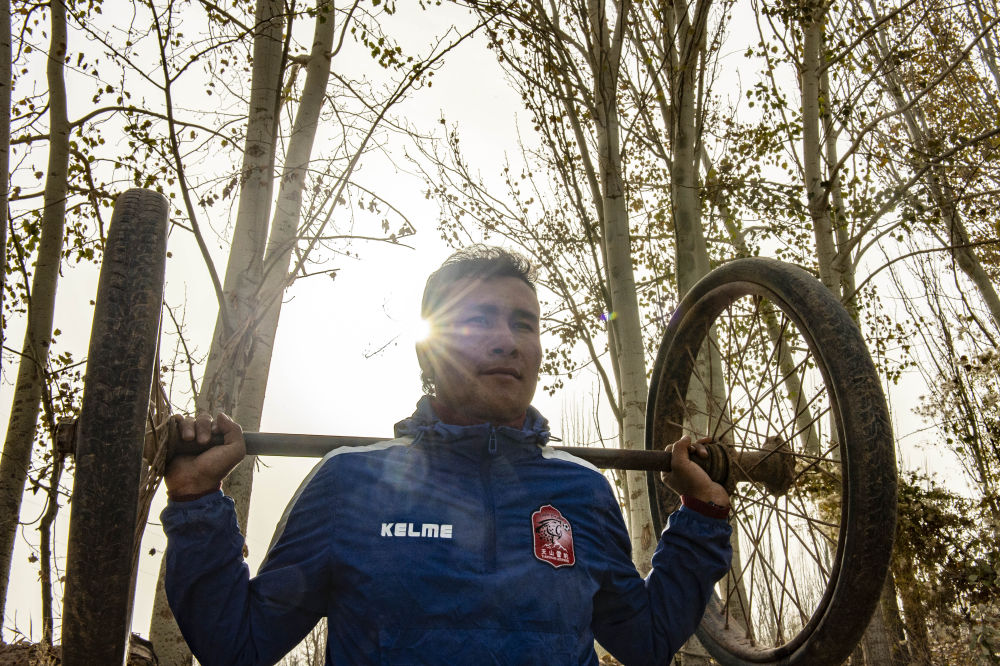 赛季结束,回到家乡,“努尔飞腿”依然是从前的那个努尔麦麦提,喂牛、喂羊、摘菜……农活儿一样不落。同时,努尔麦麦提用自制的器械坚持训练,深蹲用的轮胎是家里废弃的毛驴车上拆下来的,收腹跳、折返跑的障碍物是用削尖的木条砸进土里的。除了拖轮胎跑、深蹲等体能项目,他还增加了横向、侧向的脚步移动,一天两练直到淌汗。赶上乡里小学足球队有训练,他还会跟自己儿时的教练一起指导爱踢球的孩子们。在孩子们心目中,努尔麦麦提就是看得见、摸得着的“球星”。