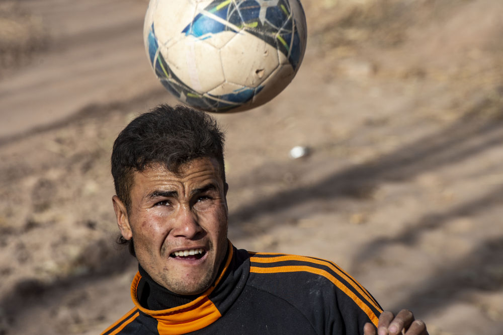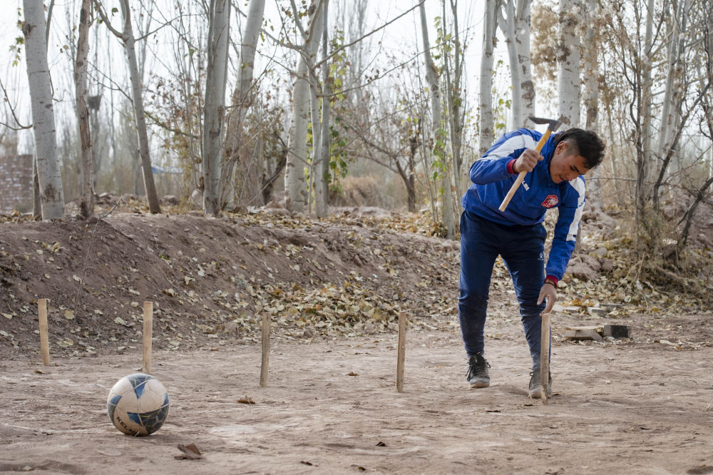 一记漂亮的凌空抽射,足球被精准地射入十米开外的牲畜饲料房透气孔,努尔麦麦提的脚下扬起滚滚沙尘。这是网名为“努尔飞腿”的新疆小伙在社交平台上发布的视频中最常见的画面。