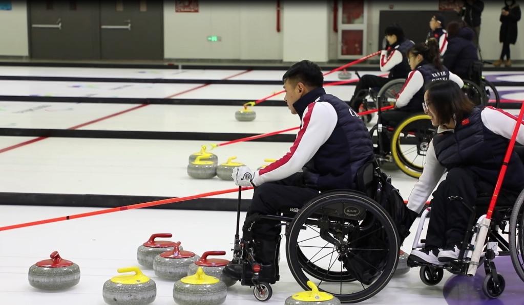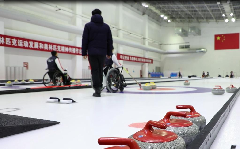 正在馆内集训的中国轮椅冰壶队是一支荣誉之师,2018年在平昌冬残奥会拿到中国冬残奥会历史首金,2019年在轮椅冰壶世锦赛一举夺魁,2021年10月份在“冰立方”举行的世锦赛上再度拿下金牌。